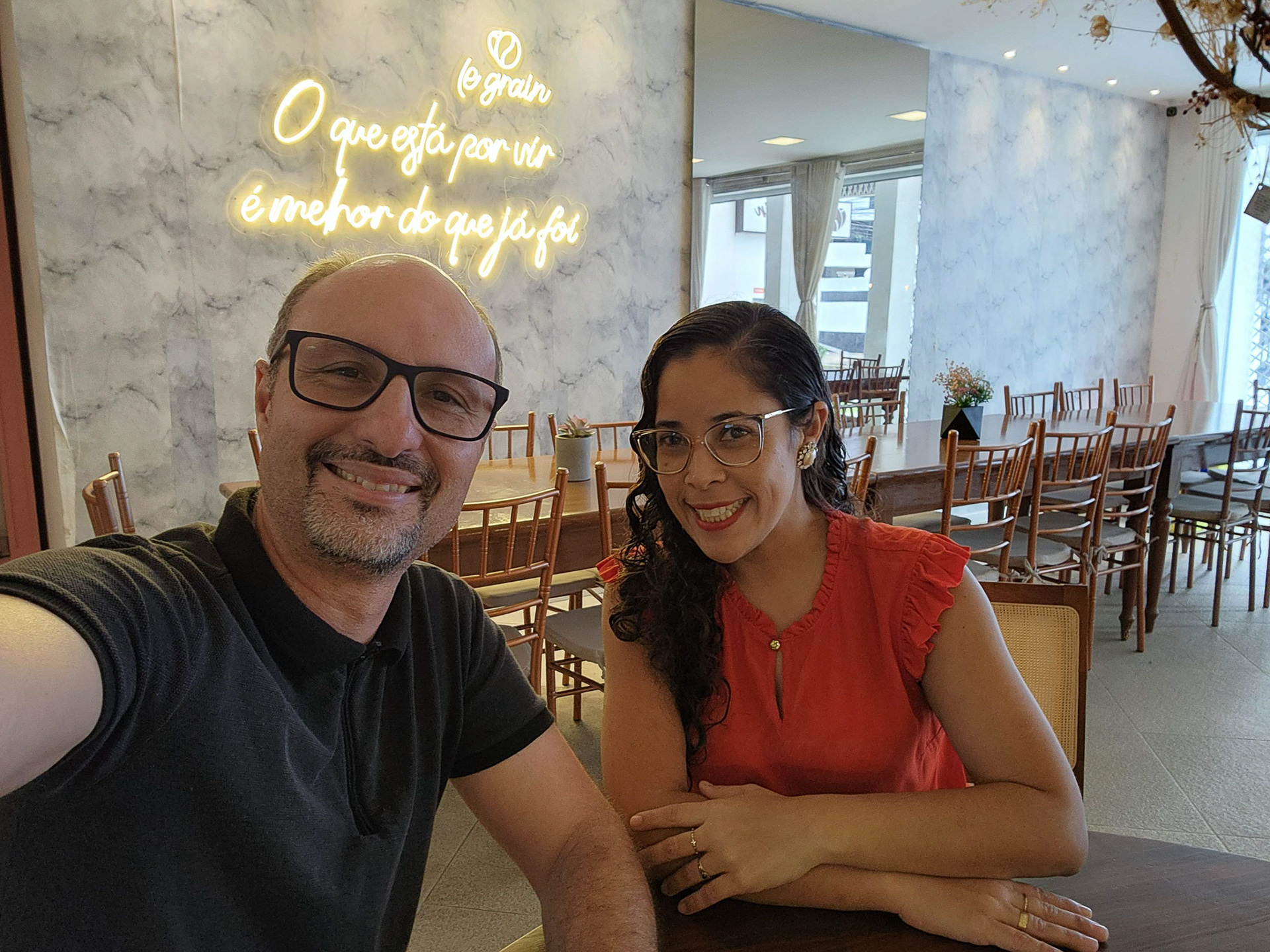 Naquele primeiro encontro, além de sorrisos e olhares trocados, algo marcou profundamente: na parede da cafeteria havia uma frase que parecia escrita especialmente para nós — “o que está por vir é melhor do que já foi”. Mal sabíamos, naquele instante, que aquelas palavras se tornariam uma profecia para a nossa história.